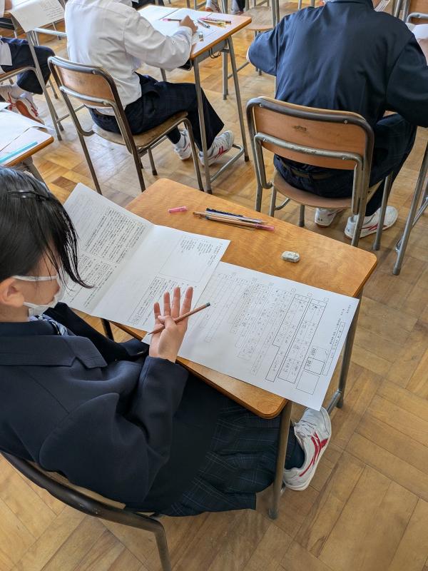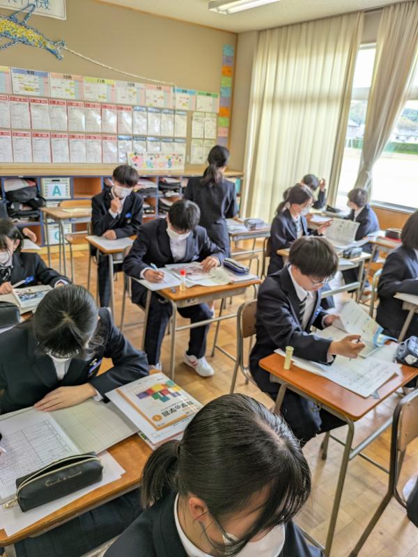 本日(5月30日)、5・6限目の総合学習で、2年生は職業調べを行いました。同時刻、3年生は2学期の運動会に向けての話し合い活動を行いました。特に3年生は自分の意見をChromebookを使って入力し、お互いに意見を共有することができました。生徒たちは、Chromebookの使用はお手の物と言わんばかりに、上手に使いこなし、まさにChromebookは文房具のようでした。