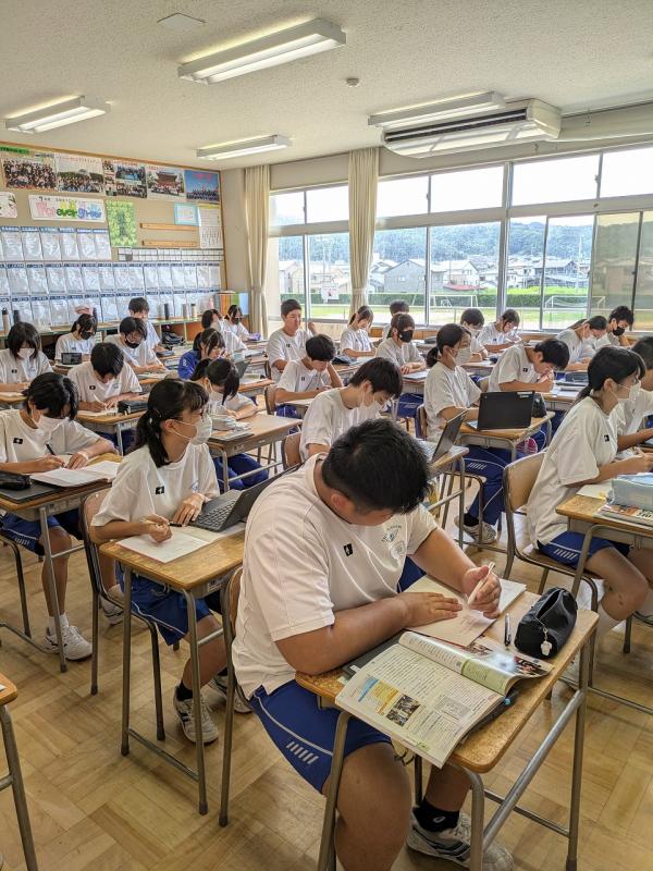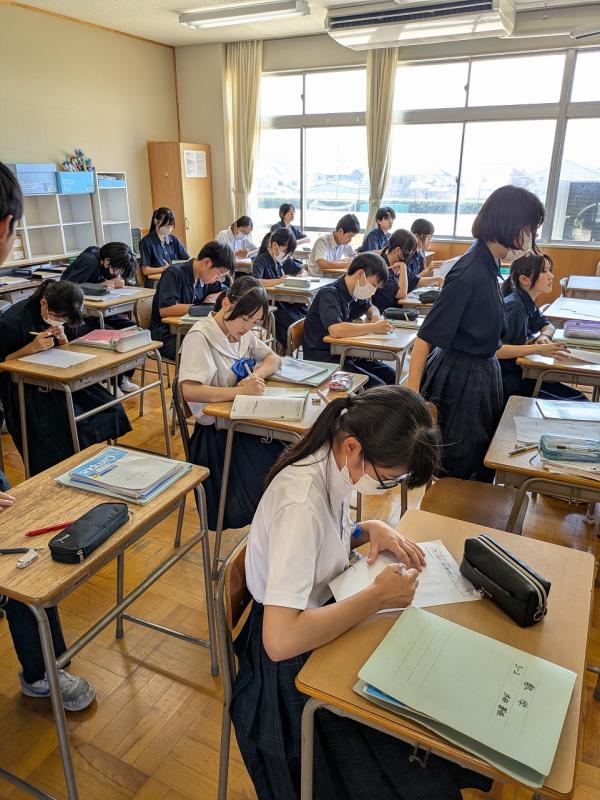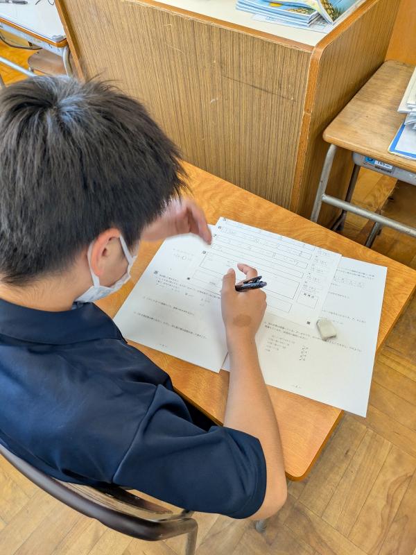 本日(9月2日)、全学年で夏休み明けテストが行われました。テストが好きな中学生はあまりいないと思います。世の中にはテストが無い学校もあるそうなんですが、やはりテストはあったほうがいいです。日々のテストは部活に例えると練習試合みたいなものです。自分の弱点を把握し、次の試合や最終的には入試に備えるためにも必要なものだと思います。