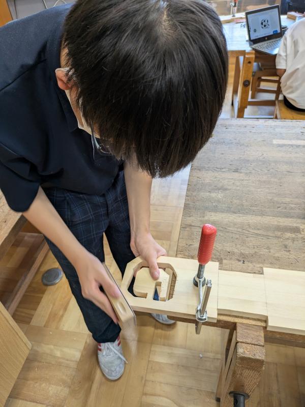 昨日(9月3日)、1年2組は技術の時間に椅子づくりを行いました。