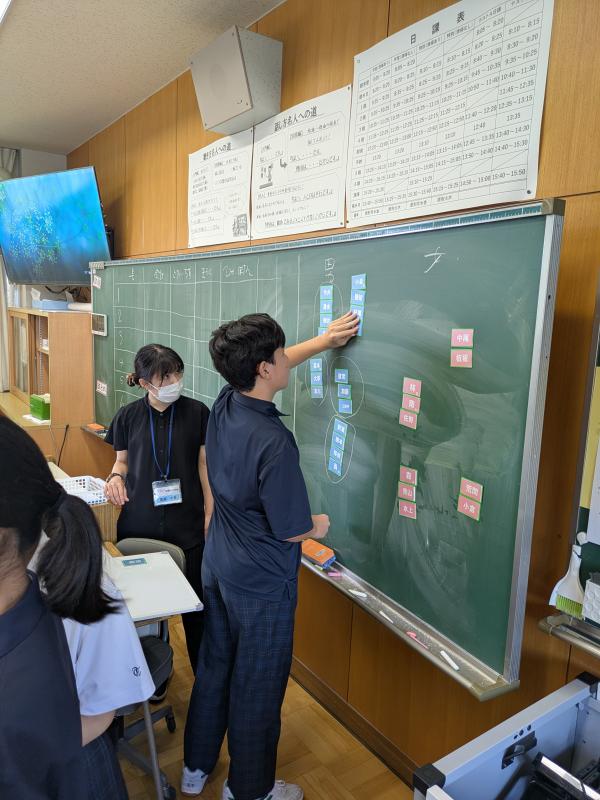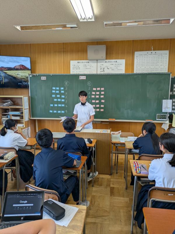 本日(9月16日)、2の4で教育実習生の高野さんが国語の研究授業を行いました。何人かの先生も見に来られていました。緊張しながらも堂々と授業をすすめる姿はとても頼もしかったです。