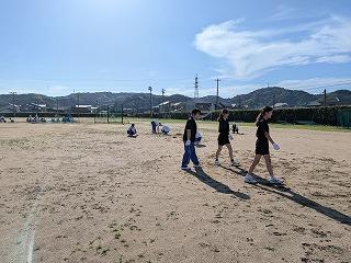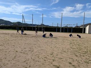 男子ソフトテニス部、女子ソフトテニス部、バドミントン部、有志の生徒、多くの保護者の皆様の参加があり、1時間ほどの作業でしたが、学校周り、グラウンドは本当にきれいになりました。