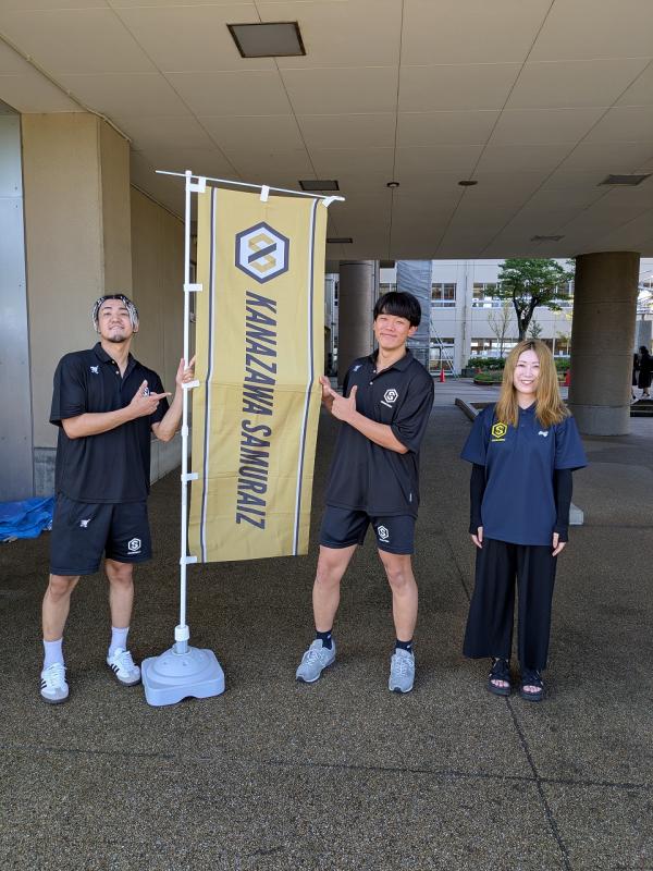 水落愛香(みずおち あいか)さん。金沢武士団のチームスタッフです。なんと水落さんは津幡南中の卒業生で村上先生の教え子だそうです。