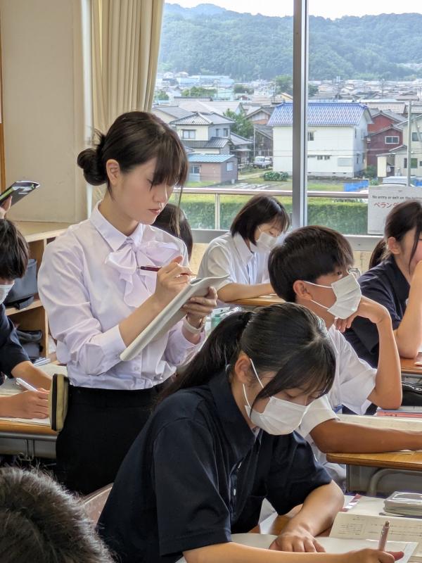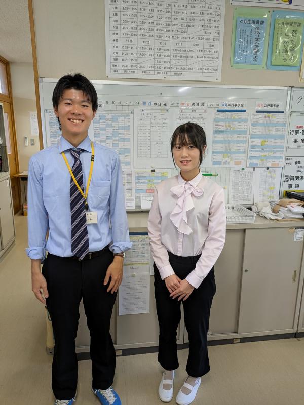 さて、現在、南中には2人の教育実習生が来ています。太田力駆さん(社会)と高野桃子さん(国語)津幡南中の卒業生です。