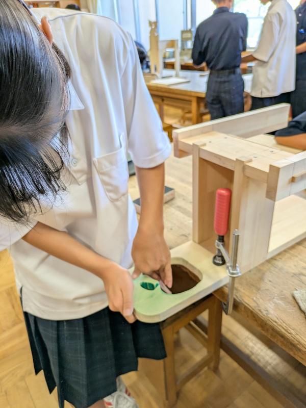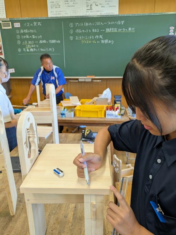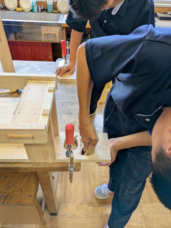 先日もご紹介しましたが、今1年生の技術の時間では「椅子づくり」を行っています。子どもたちの真剣な眼差しはまさに職人のようです。物づくりにも得意・不得意はありますが、とにかく目をキラキラ輝かせながら切ったり削ったりしています。いいですね~。