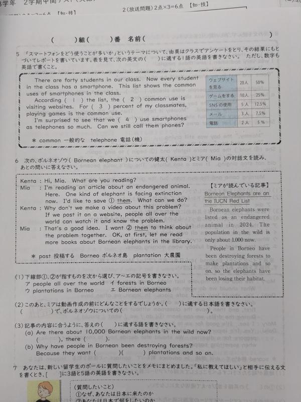 それにしても今の中学生の学習の中身は難しい・・・。筆者が中学生のころ(今から35年以上前)は、こんな複雑な問題はでなかったはず。「This is a pen.」なんてもはや死語のようなものです。自然な会話やコミュニケーションをいかに相手に伝えられるかが出題されます。もちろんテストの点が良いに越したことはありません。けれど人間の価値はそれがすべてではありません。自分なりに頑張った成果が結果に出ればまた次につながります。
