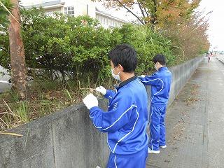 今日は朝7時30分から1時間余り、第3回奉仕作業(今年度最終回)を行いました。校地外周の草刈り(保護者と男子ソフトテニス部・男子バスケットボール部)と校舎内外の窓拭き(ボート部・サッカー部・家庭部)でご協力いただきました。ありがとうございました。