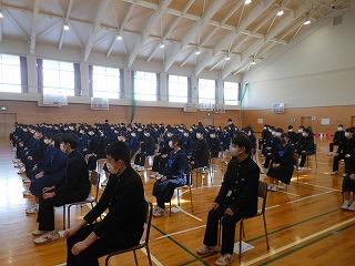 今日は1・2年生が3学期期末テスト、3年生は特別時間割で卒業式練習等を行いました。