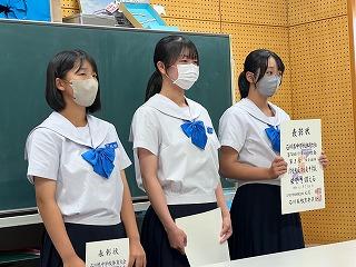 次に表彰伝披露です。県体で活躍した男女テニス部、相撲部、水泳,と通信陸上について、表彰が披露されました。