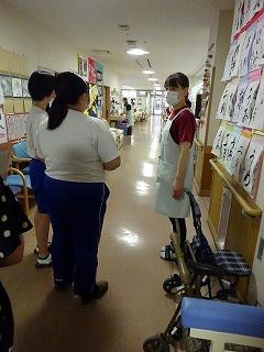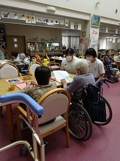 ものづくりをしたり、入浴後に髪を乾かすお手伝いをしたりして、お年寄りとの交流を深めました。
