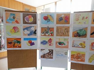 今週月曜日から、展示ホールに河北郡市中学校美術作品展の優秀作品が展示されています。郡市内6校の1年生(静物画)と2年生(風景画)の作品約50点です。静物3点の配置の仕方や風景画の遠近のとらえ方など、ぜひ間近で鑑賞してみましょう。