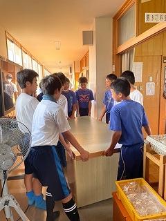 最終確認で残っていた特別教室の教卓を運び出してくれたのはサッカー部の皆さんでした。他の箇所も今後、多くの部員の力を借りながら、2学期の準備を進めていきます。