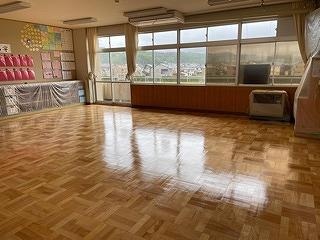 写真は3年2組です。この後、ワックスをかけ、抗菌ガスを噴霧します。