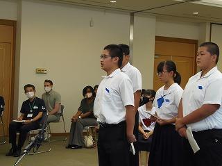 本校からの参加者 坂田 結菜さん、吉倉 勝くん、中本 侑吾くん、松浦 灯くん