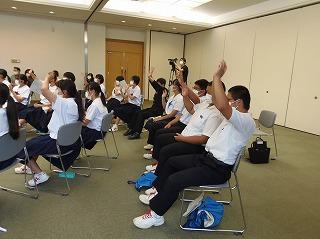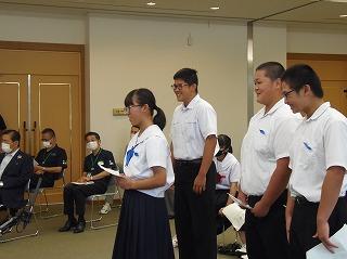 今日3時30分より、町役場で出場者激励会が行われ、出場選手に対して、矢田富郎町長様から激励のお言葉をいただきました。本校からは4名の生徒と、永井校長、西谷先生の計6名が参加しました。