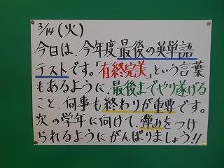 今日正午に公立高校一般入試の合格発表が行われ、3時過ぎから、多くの生徒が合格の報告に来てくれました。来週からは各校で予備入学が行われます。持ち物を確認して備えましょう。