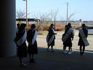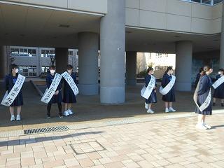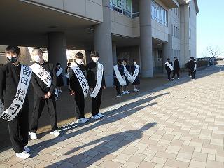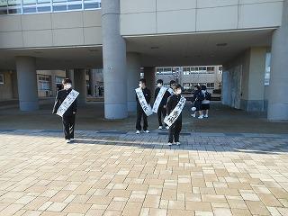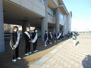 今日から3日間、令和5年度前期生徒会役員選挙立候補者による選挙運動が始まりました。立候補した生徒たちは大きな声でアピールしていました。