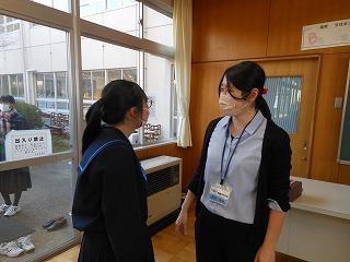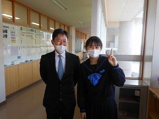 本校ソフトボール部の新谷歩美さん(2年2組)が石川県代表メンバーに選出され、月末の全国大会に出場することとなりました。今日昼休みに校長室を訪れ、県代表としての活躍を誓いました。