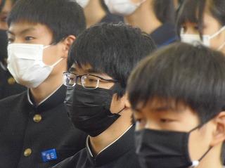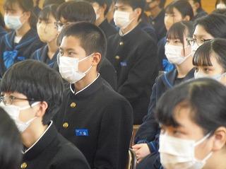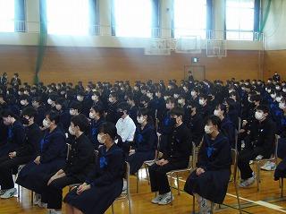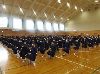 安全が確保された放送を聞き、体育館に移動し、防犯教室を行いました。今日の訓練の結果は教職員・生徒ともに「100点満点」の評価を石川県警察本部の方から受けました。
