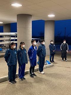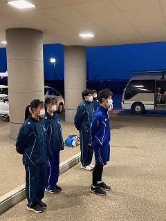 ボート部の4名は石川県代表として、福井県久々子湖で開催される第18回全国中学校選抜ボート大会に出発しました。昨日のうちにボートは積み込み、今日は6時前に集合、保護者や永井校長先生に決意を表明し、顧問の茶谷先生・岡本先生とともにバスに乗り込みました。昼前には現地入りし、午後からの予選に挑みます。