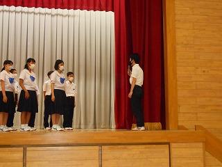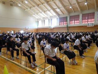 昨日の6限目は、2・3年生が体育館で、1年生が卓球場で集会を行いました。4・5月の大会の表彰披露に続いて、永井校長先生のお話、茶谷先生(生活)・岡本先生(学習)のお話と、6月の学校生活を送るうえで心がけることを確認しました。
