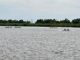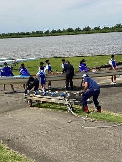 本校ボート部は今日・明日と石川県津幡漕艇場で開催されている「第55回北陸中日レガッタ」に出場しています。新型コロナ感染症に関わる県外大会参加の見合わせで、愛知県や静岡県の大会には参加できませんでしたが、久しぶりの大会です。地元開催とあって、1年生部員も出場。良いコンディションにも恵まれ、見事1000mを漕ぎ切りました。1年生にとっては日頃の練習やトレーニングがいかに大事かを知る良い機会となったのではないでしょうか。本日はタイムトライアルを行い、明日のコースが決定しました。明日も天候は良いようです。