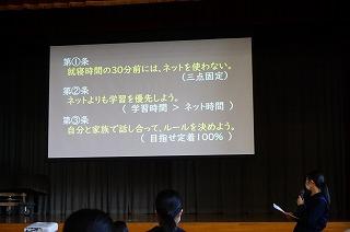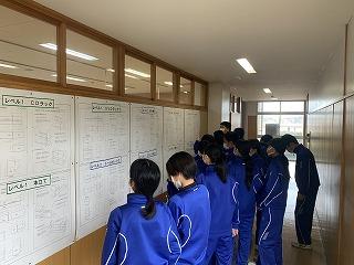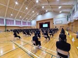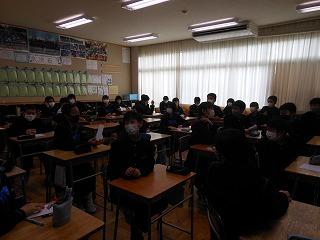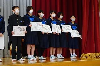 昨日1日6限目に12月の全校集会を行いました。10~11月の大会や作品展・コンクールの表彰披露に続いて、内容は3人の先生方のお話と生徒会の時間でした。永井校長先生からは人権週間と進級・進学に向けて学習を充実させようととの呼びかけがありました。
