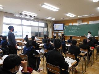 今日は石川県教育委員会の先生をお招きして、社会科の研究授業を行いました。前多遥佳先生が「東北地方の伝統的な生活・文化は、なぜ長い間受け継がれているのか」を課題に、気候・自然環境の面と歴史の面、そして現在の面から考えました。稲作が盛んなことから豊作を祈る祭りや冬を乗り切るための保存食、特産物を生かした祭りなどは、現在では観光産業としての役割も果たしていることをまとめていました。