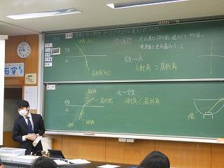 1年生の理科はエネルギー分野「光・音・力による現象」の学習に入りました。まずは、光の現象で「光源を出た光はどのように進むのか」や「光を鏡に当てたとき、光はどのようにはね返るだろうか」の課題解決学習に取り組んでいます。