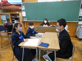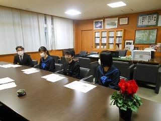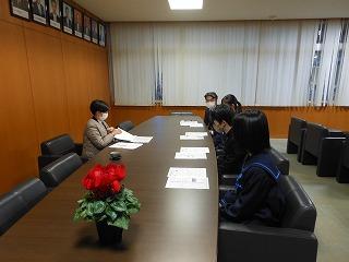 昨日の放課後、生徒会執行部や3年プロ委の意見が読者投稿欄に掲載されていることを受けて、新聞社の記者さんから取材を受けました。3年生の松村遥さん、小村聖也くん、上田暖奈さんの3人が校長室で記者さんの質問に答え、自分の意見を作文にまとめるにあたって工夫したことや苦労したことについて語っていました。後日、新聞に掲載いただく予定です。