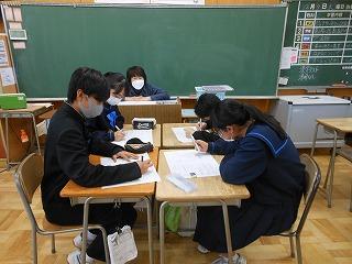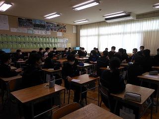 3年生は期末テスト・第3回統一テストを終えましたが、1月11日に行われる第4回郡市統一テストの出題範囲に合わせて、授業を急ピッチで進めています。時間割に5教科すべてがあるクラスも多いのですが、12月の学習目標に合わせ、自身を高める学習態度に授業に臨んでいます。