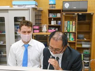 今週の給食時には、人権イメージキャラクターソング「世界をしあわせに」を放送しています。毎日、人権教育担当の田村先生のお話がありますが、今日はゲストとしてALTのジョナサン先生が、自分の経験から、人の気持ちを想像すること・イメージすることがより良い人間関係を築く際に大切であることを訴えてくれました。