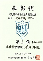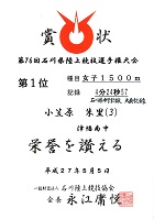 女子 1500m 1位 小笠原朱里(3年) 4位 澤井柚葉(2年) 5位 川下玲奈(2年)