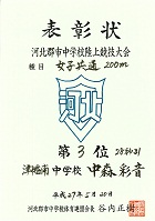 スクール部門 個人 優秀賞 小塚日菜乃 3等 中井彩未