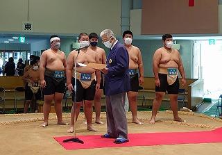 今日は石川県立武道館屋内相撲場で令和3年度石川県相撲選手権大会が開催され、中学校の部に出場した本校相撲部は団体で準優勝を治めました。