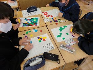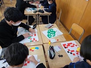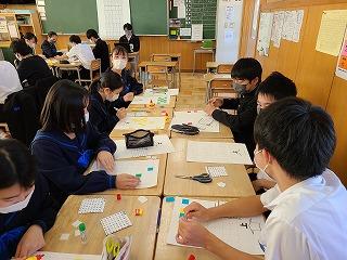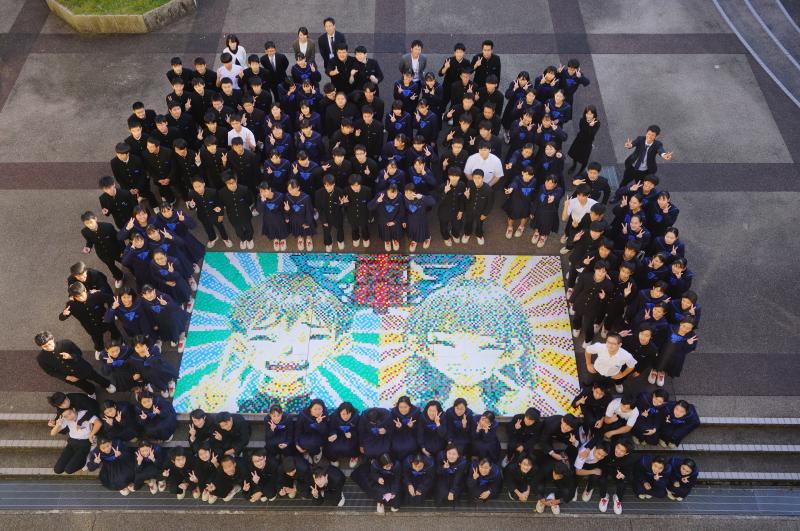 今週金曜日は令和3年度学校祭。時間を短縮しての開催ですが、3年生は学年制作として、笑顔をテーマにしたモザイク画に取り組んでいます。完成すると、縦6m・横3mの大きな展示になります。