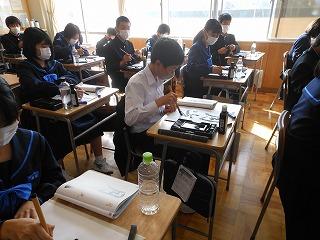 2年生はステージ発表の生徒は事前の打ち合わせを、他の生徒は先週の学年集会を受けて、早速上級学校調べに取り組んでいます。来週からはこれまでの学習がどれくらい定着しているかを確認する期間に入り、12月の町学力実態調査、1月からの講座学習に取り組んでいくこととなります。