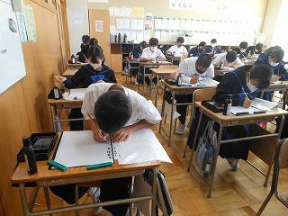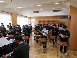 3年生の合唱コンクールの練習に続いて、1・2年生の音楽の授業でも歌う活動に取り組み始めました。1年生は「朝の風に」を、2年生は「夏の日の贈り物」を混声二部合唱で歌っています。マスクをしてではありますが、久しぶりの歌う活動です。素敵なハーモニーを響かせていきたいですね。