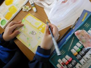 2年生の美術の授業では、パッケージデザインに取り組んでいます。一人一人が既存のパッケージデザインからヒントを得て、オリジナルの作品づくりをしています。