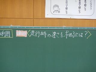 3年生では「関数の利用」の単元で「走行時の速さを求めるには」を課題として学習しています。車の速さとブレーキ痕の長さの関係について、級友と話し合いながら予想をしていました。