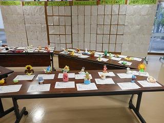 展示コーナーは、2年生の総合的な学習の作品や1年生の津幡町調べ・ゆるきゃら作品のほか、美術部や家庭部の作品が飾られています。保護者の皆様は来週の学校公開でご覧ください。展示ホールはスクールリサイクルの会場になりますので、場所は当日のご案内で確認してください。