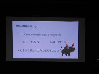 学校祭で、1年生は津幡町PR動画上映とステージ発表、津幡町のマスコット作りに取り組んでいます。ステージ発表では源平倶利伽羅合戦を題材にした劇を演じます。昨日の総合では展示ホールのスペースでリハーサル。金曜日の本番に向けて気合いが入っています。