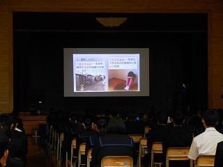 オープニングに続いて、各学年の総合的な学習の時間のステージ発表がありました。1年生は津幡町について寸劇を入れながらの発表、2年生はクイズをいれながら中核都市・金沢市について発表しました。3年生はこれまでの学習を受けて、次世代として自分たちができることについて発表しました。どの発表も学年の代表にふさわしいものでした。