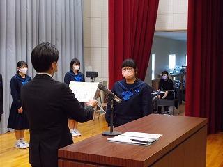 合唱コンクール後の休憩後に、弁論大会の表彰式・合唱コンクールの表彰式が行われました。