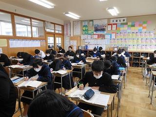 ▽1・2年 昨日の技術家庭テストに続いて今日は5教科のテストを受けました。