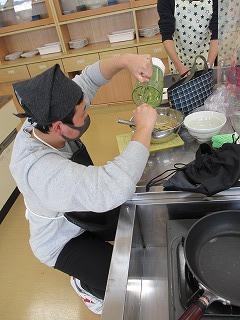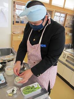 昨日の3限目は、一人調理で進めてきた「調理実習」の最終回でした。それぞれが考えたメニューを短時間で調理し、仕上げました。