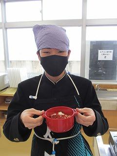 また、先週金曜日の給食は2年3組の吉田鉄平くんの汁物メニューコンクールC部門(洋食)最優秀賞献立でした。メニューはミルク食パン、いちごジャム、豚肉のトマトソース、白菜とツナのサラダ、クラムチャウダークラッカー付きの豪華メニューでした。
