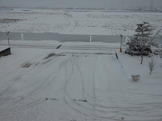 今日も思わぬ雪のスタート。生徒の皆さんの登校に合わせて、今日も茶谷先生が南中条西の交差点から学校までの歩道、駐車場内の歩道の部分を除雪機で除雪。今ほど、職員室に戻ってきました。