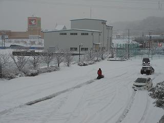 昨晩から10cm以上の積雪があり、学校前の歩道も歩きにくい状況です。生徒の皆さんの登校に合わせて、生徒指導担当の茶谷先生が6時30分から除雪機で除雪をしてくれています。南中条西の交差点から学校前は歩きやすい状態です。