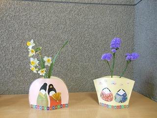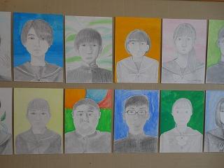 2年生は全クラスで粘土で作る「和菓子」を制作しました。季節感のあるおいしそうな和菓子が美術室の後ろに並んでいます。美術室が小さな美術館のようになっていますね。