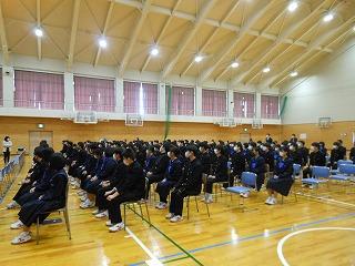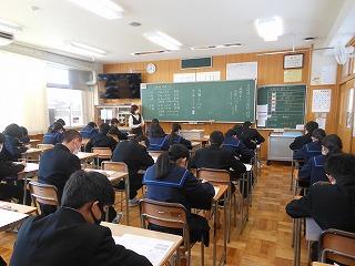 3年生は全校集会後の2・3限に最後の面接練習や問題演習に取り組み、4・5限と卒業式練習を行っています。いよいよ証書授与のリハーサルです。呼名に対する大きな返事も聞こえています。